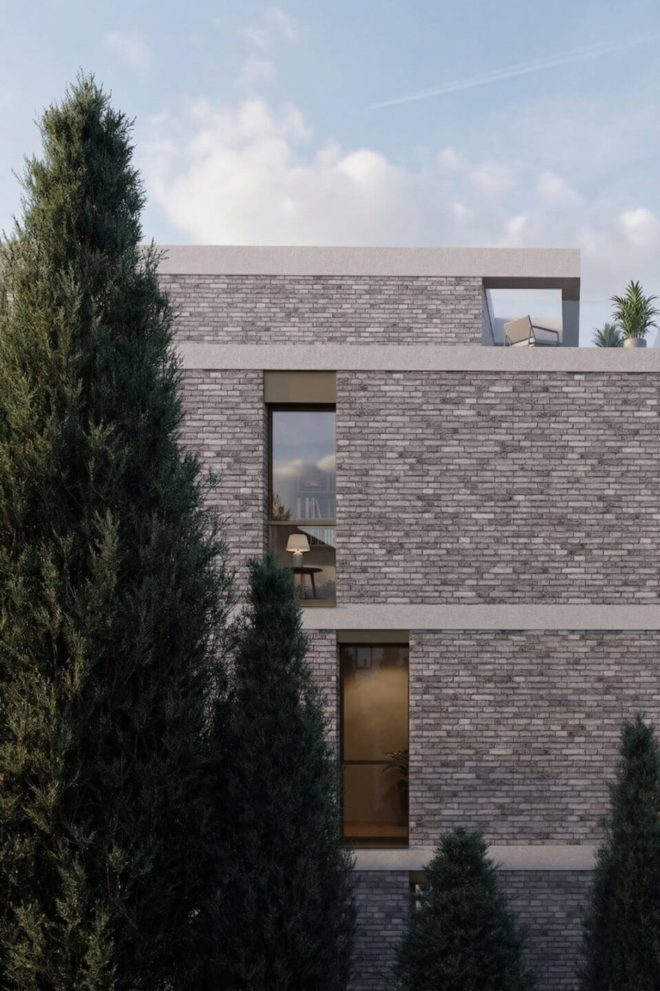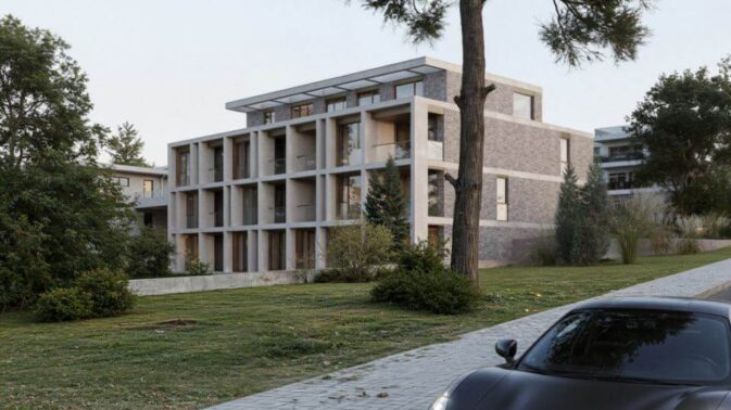 Концепцията на сградата съчетава съвременна архитектурна визия, устойчиви материали и практични решения за ежедневен комфорт. Конструкцията е стоманобетонна, с плосък покрив и неносещи преградни и ограждащи зидове. Фасадното оформление включва топлоизолация от каменна вата, вентилируема фасада, алуминиеви композитни панели и облицовка от керамични тухли. Дограмата е алуминиева в цвят RAL 7016 с двукамерни стъклопакети, а терасите са със стъклени парапети, които допринасят за по-лек и модерен облик на сградата.